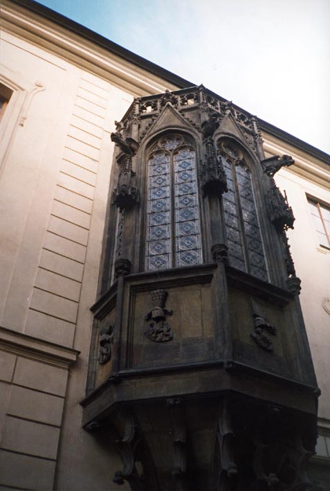А теперь двинемся на восток, на окраину Старого Места, к “Прашной бране” (Пороховой башне), служившей в средние века въездом в город (1475 год). Когда-то эту красавицу называли “Нова веж” (Новая башня), поскольку она была построена на месте более старой проходной башни - “Одрана” (Ободранной).